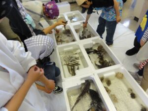 会場には“お魚とのふれあい体験コーナー”として、生きたタイやマダコ等と直接触れ合える展示もあり、子供たちの元気な声が溢れる中での開催となりました。